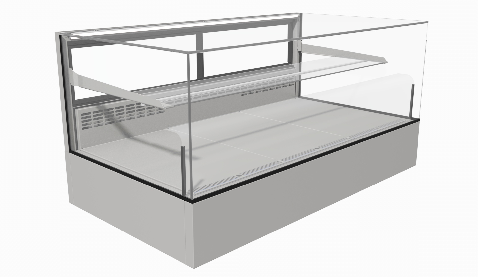 Key Features Key Features Frameless single-glazed glass canopy with UV bonded seams Available in square and angled back option MiniTek compact refrigeration technology built into base of cabinet. No bench cut-outs or condenser installation required and cabinet is freely moveable across benches, between benches and to new locations Fan assisted cold air blanket across floor of cabinet Single level display Optional shelf for ambient display can be mounted off rear rails DuraCoat protective coating over the refrigeration coil to prevent food acid corrosion SlimLED lighting system with 12V safety off top rear rail SureVap self-evaporating system for condensate - no drain required Removable glass shelf for ambient display