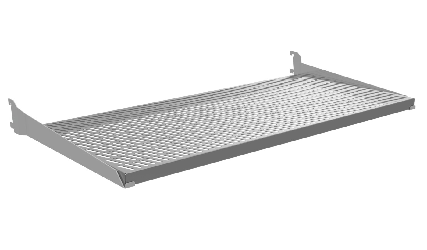 These perforated stainless steel shelves are well suited for drinks and heavy load displays.